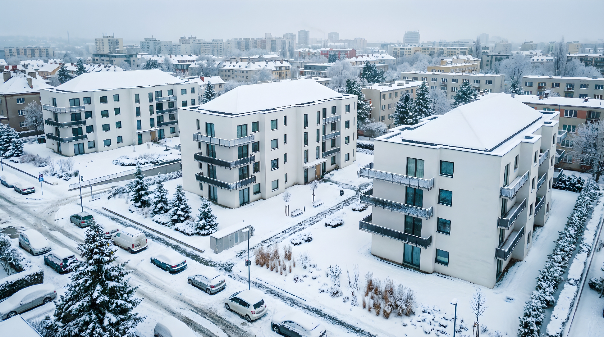 Projekt koncepcyjny osiedla budynków wielorodzinnych.
